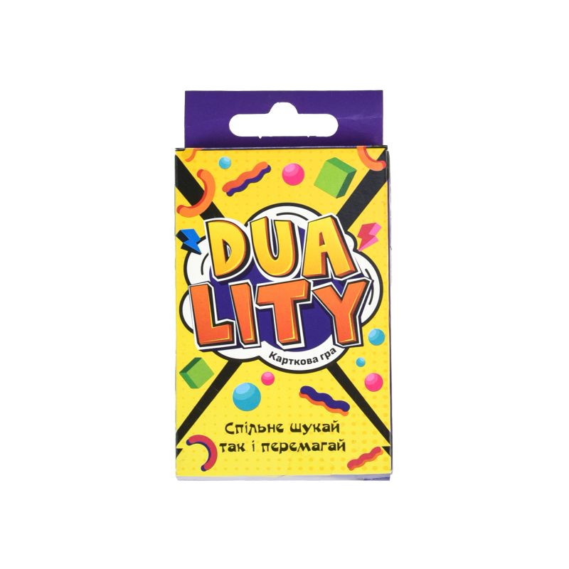 Duality — весела гра і справжня розминка для швидкості мислення та реакції. Вона стане відмінною розвагою для дітей шкільного віку, будь-то між заняттями, в дорозі або на святі. Основне завдання гравців – швидко порівнювати елементи на картках та знаходити подібні. Перемагає той, хто збере найбільше карток, демонструючи найкращі навички спостережливості та швидкості реакції. Duality гарантує веселі моменти та корисний розвиток для кожного учасника.♦ Комплектація: коробка, гральні картки - 35 шт., інструкція.♦ Вага: 37 г♦ Розмір:10х5,7х1