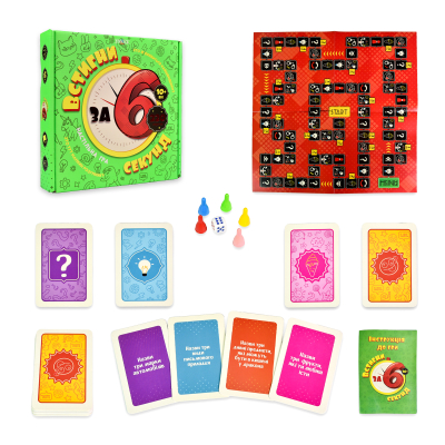 Що можна встигнути зробити за 6 секунд? Ляснути в долоні, зробити ковток лимонаду, глибоко вдихнути… Здається, що не так вже і багато. Але є дещо, що кожна людина може зробити дуже швидко – сказати дурницю перш, ніж подумати.Перед вами нестандартна настільна гра, де перемогу вирішить ваша зібраність та вміння миттєво підібрати відповіді на запитання. Гарантуємо – розумники будуть в захваті.Перевірте, на які запитання зможете відповісти саме ви!♦ Рекомендований вік: 10+♦ Розмір коробки: 25х24х3 см♦ Комплектація гри: картонні гральні картки – 220 шт., інструкція — 1 шт., ігрове поле – 1 шт., пісочний годинник – 1 шт., кубик – 1 шт.♦ Вага гри: 0,4 кг (+-20 г)♦ Кількість гравців: 2-5Гра українською мовою.