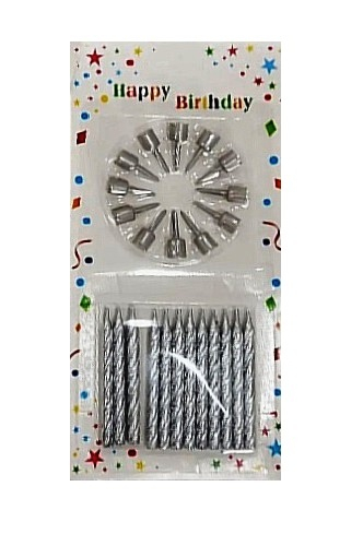 Свічки на торт набір 12шт. 5,5см. срібні №8493-2 з підставками