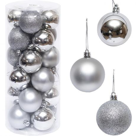 Набір новорічних кульок 24шт. d-8см. срібло ZWH8CM SILVER №116212