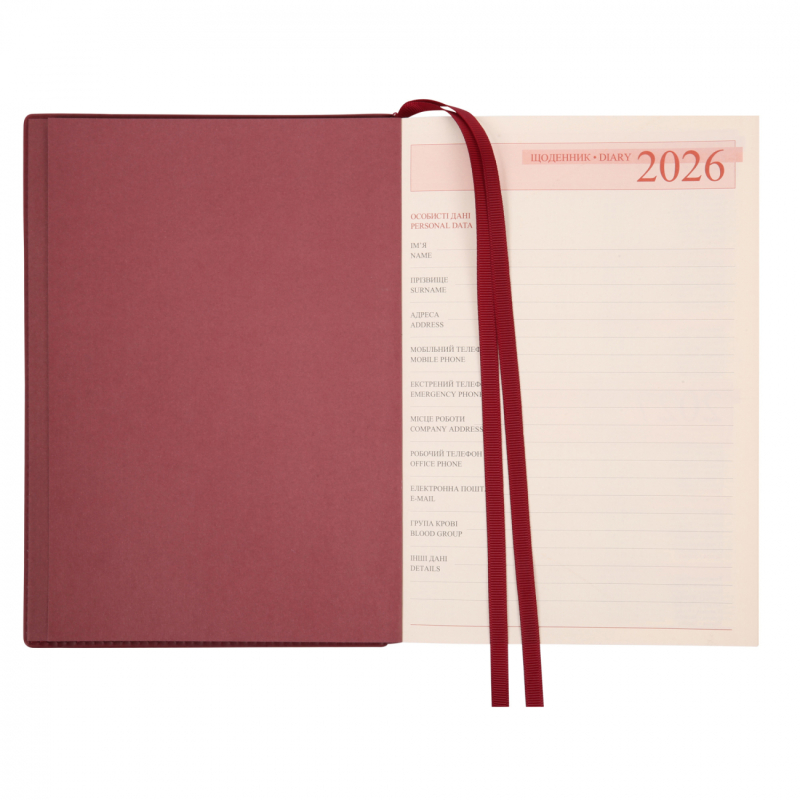 Щоденник 2026 A5/368стор. Leo Planner ʺCredoʺ інтегральний, бордовий №252645