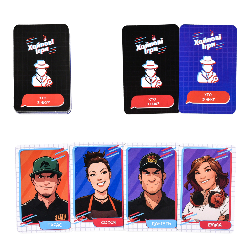 «Хайпові ігри» — це добірка трьох найцікавіших ігор із соціальних мереж в одній коробці. Вони створені для компаній друзів, що люблять логічні загадки, швидкі реакції та веселі інтелектуальні батли.№1. «Я йду в похід» — гра на логіку та кмітливість, у якій потрібно розгадати приховане правило ведучого й зрозуміти, що можна взяти з собою «в похід».№2. «Хто з них?» — швидка гра для двох, у якій треба відгадати персонажа суперника. Став запитання, на які можна відповісти лише «так» або «ні», і звужуй коло підозрюваних, доки не знайдеш правильну відповідь.№3. «Влучні словосполучення» — динамічна гра на швидкість і креативність. Гравці складають сталі словосполучення з двох випадкових літер. Хто першим назве правильне — забирає картку та стає ближче до перемоги.Вік: 8+Кількість гравців: 2-10Розмір коробки: 14 х 10 х 2,5 смВага: 160 г