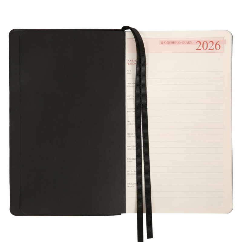 Щоденник 2026 12х20см./352стор. Leo Planner ʺGloryʺ м'який, чорний №252632
