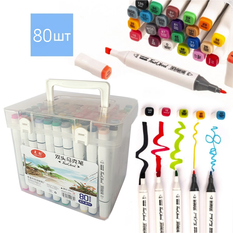 Купити Фломастери-маркери (80кол.) двостороні, для скетчингу №064711 Ви можете в нашому інтернет-магазині, зробивши замовлення, і ми доставимо його до будь-якої точки України, докладніше про доставку.