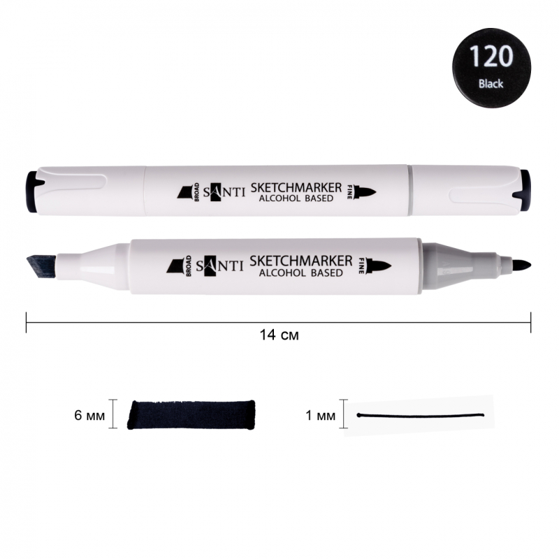 Маркер спиртовий SANTI ʺProfessionalʺ SA-120, чорний №390834