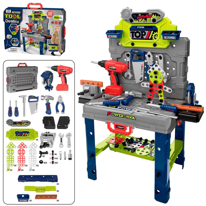 Стіл з інструментами 008-201A, 58,5-31,5-81,5см. шуруповерт, молоток, викрутки,132 дет.
