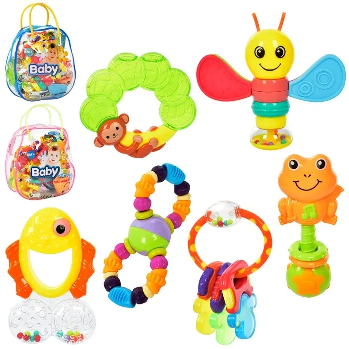Брязкальце 6616, 12-15см. брелок, прорізувач, звук, 6шт. у сумці 25*18*6см.