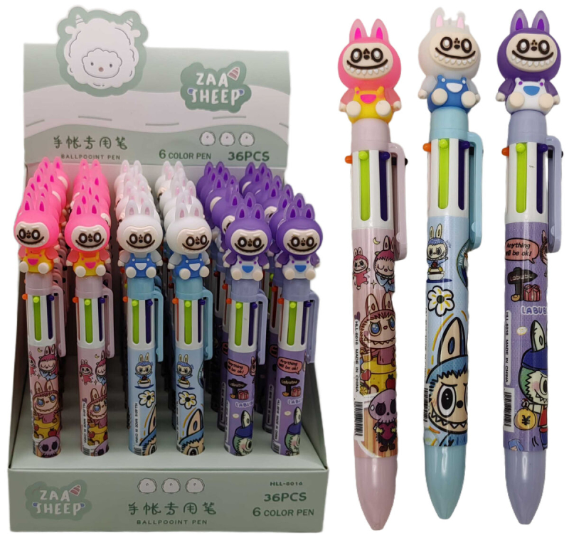 Ручка кулькова 6кол. ʺЛабубу об'ємнаʺ 8016-LA