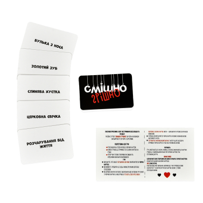 «Смішно-грішно» — вибухова настільна гра для вечірок. Добирай найдивніші кінцівки до фраз і сміши друзів.У наборі — 98 карток та інструкція.Для 3+ гравців від 16 років.Ідеально для гучних вечірок і нестримних веселощів.Розмір коробки:14 х 10,2 х 2,1 смКомплектація:коробка, 98 карток, інструкція