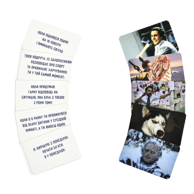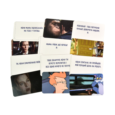 Скажіть "ні" нудним вечорам і "так" безмежному сміху! З "Відпадними мемчиками" ви створюєте найсмішніші меми, які підходять до життєвих ситуацій.Роздайте картки, оберіть суддю, і нехай креативність та гумор ведуть вас до перемоги! Виграє той, хто збере найбільше текстових карток.Легка підготовка, прості правила та нескінченний позитив для компанії друзів. Грайте, смійтеся, змагайтеся!"Відпадні мемчики" – твій рецепт гарного настрою!♦ Комплектація: коробка, гральні картки - 110 шт., інструкція.♦ Вага: 170 г♦ Розмір: 10,2х14х2,5 см