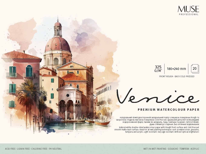 Блок для акварелі В5+/20арк. 325гр./м2 ʺMUSEʺPB-GB-020-099