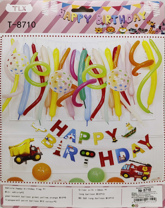 Фотозона з повітряних куль ʺHappy Birthdayʺ Машинки, 26*30см. №8710