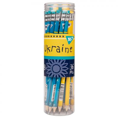 Олівець YES чорнографітний круглий з ластиком, у пластик. тубі 36шт. ʺUkraineʺ №280660