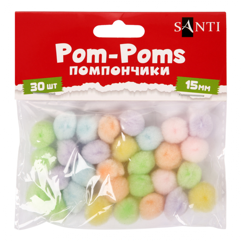 Помпони SANTI, пастельні, мікс, акрил. d-15мм. 30шт. в упак. №955453