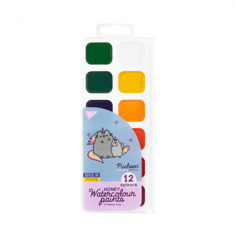 Акварель медова 12кол. пластик. упак. YES ʺPusheenʺ без пензлика №110275