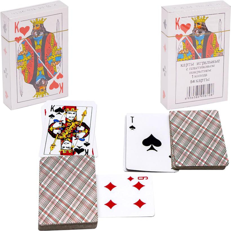 Гральні карти з пластиковим покриттям — універсальний набір для різних настільних ігор. Колода містить 54 карти стандартного формату, які забезпечать комфортну гру. Пластикове покриття захищає карти від зношування, вологи та заломів, роблячи їх довговічними та зручними у використанні. Розмір карт: 6×9 см. Чудовий вибір для домашніх вечорів та розваг у компанії.