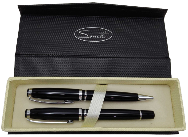 Купити Набір 2 ручки у футлярі ʺSonataʺ кулькова+ролер чорні зі сріблом №BR-702-2 Ви можете в нашому інтернет-магазині, зробивши замовлення, і ми доставимо його до будь-якої точки України, докладніше про доставку.