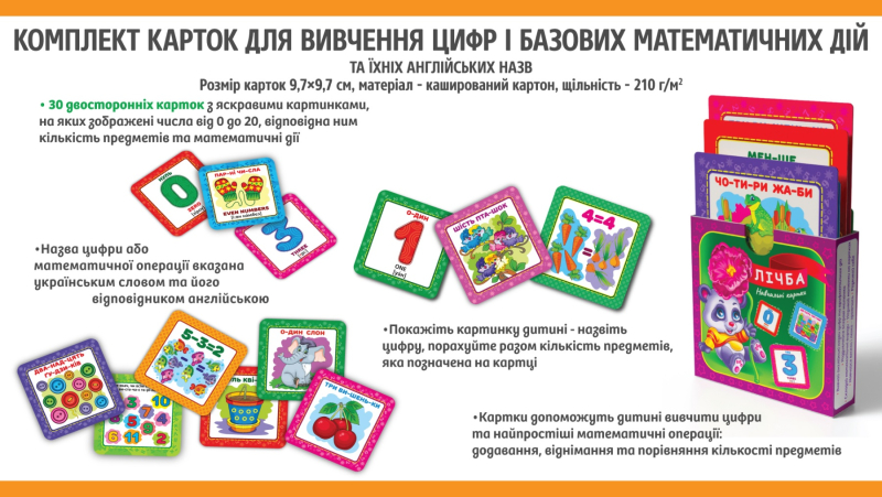 Купити Навчальні картки Лічба NAK-03 Ви можете в нашому інтернет-магазині, зробивши замовлення, і ми доставимо його до будь-якої точки України, докладніше про доставку.