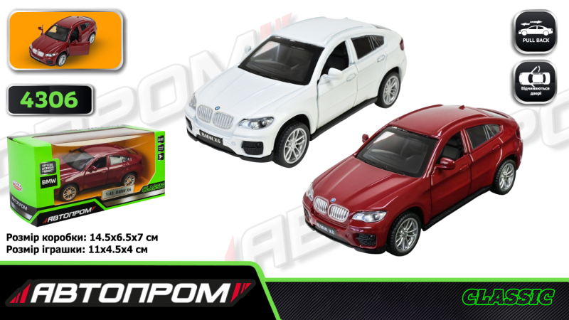 Машина металева АВТОПРОМ 4306, 1:43 BMW X6, у коробці 14,5*6,5*7см.