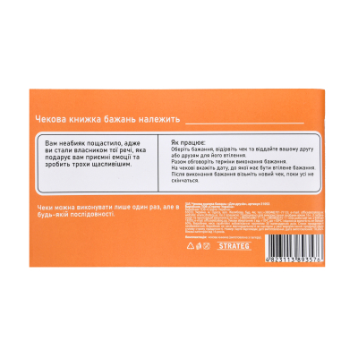 Купити Гра настільна 31053 ʺЧекова книжка бажань Для друзівʺ Ви можете в нашому інтернет-магазині, зробивши замовлення, і ми доставимо його до будь-якої точки України, докладніше про доставку.