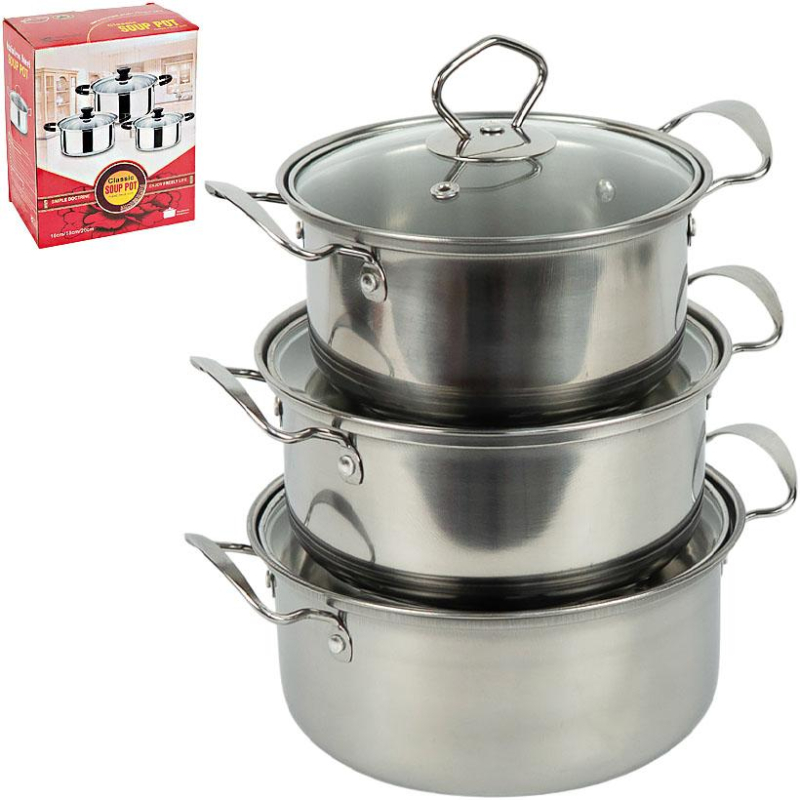 Каструлі із нержавіючої сталі 3шт. 1/1,5/2л. з кришками (d-16, 18, 20см.) 898-4, №122970