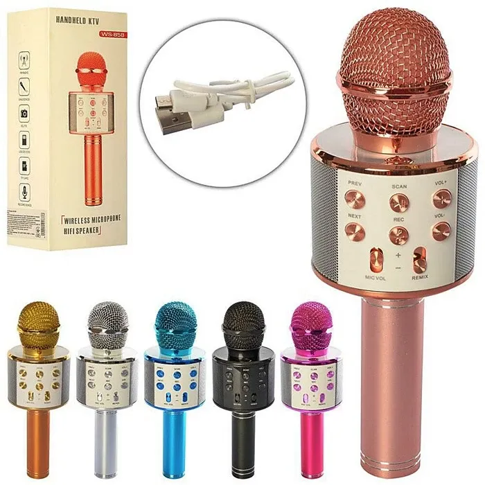 Мікрофон WS858/ AA10-1, акумул. підключення до телефону, USB, Bluetooth, караоке, у коробці 25*9.5*9см.