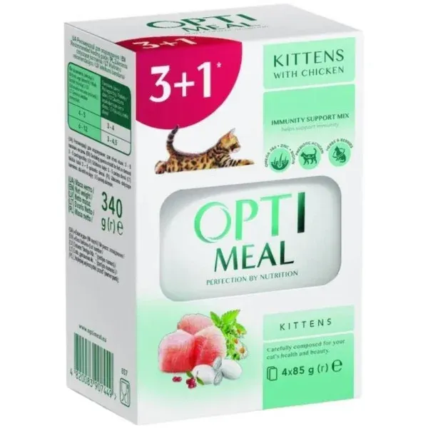 Набір OPTIMEAL ʺВологий корм для кошенят з куркоюʺ (3 + 1)