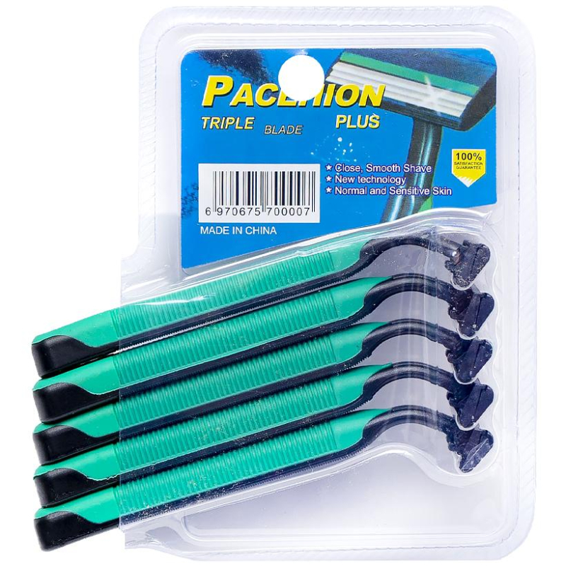 Набір чоловічих бритв 5 шт — зручний варіант для щоденного гоління вдома або в подорожах. Кожна бритва має 3 гострі леза, що забезпечують чисте та комфортне гоління без подразнення шкіри. Ергономічна ручка гарантує зручність і контроль під час використання. Розмір однієї бритви — 11,5×4 см. Набір упакований у компактний блістер 14×10 см, зручний для зберігання та реалізації.