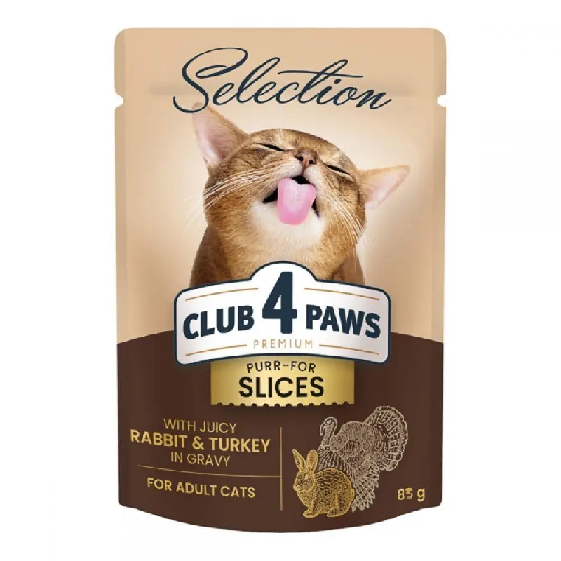 Вологий корм для котів 0,085кг. Club 4 Paws Plus Selection ʺКролик та індичка у соусіʺ
