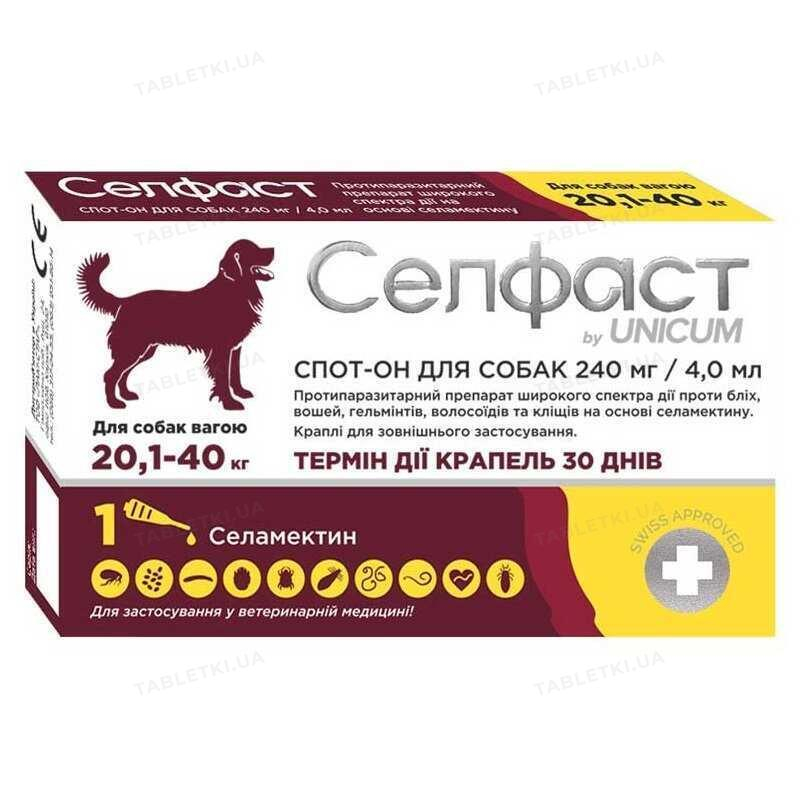 Краплі Unicum Селфаст від бліх, кліщів та гельмінтів на холку для собак, 20,1-40кг (селамектин) UN-126
