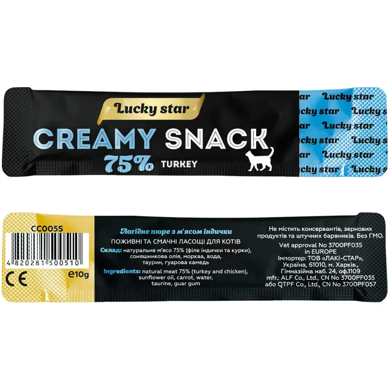 Пюре для котів LUCKY STAR у стіках з індичкою, 10гр.