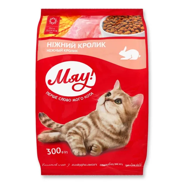 Купити Сухий корм для котів 0,3кг. МЯУ ʺКроликʺ Ви можете в нашому інтернет-магазині, зробивши замовлення, і ми доставимо його до будь-якої точки України, докладніше про доставку.
