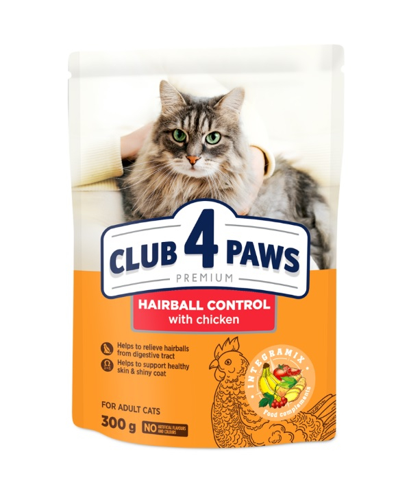 Купити Сухий корм для котів 0,3кг. Club 4 Paws ʺВиведення шерстіʺ Ви можете в нашому інтернет-магазині, зробивши замовлення, і ми доставимо його до будь-якої точки України, докладніше про доставку.